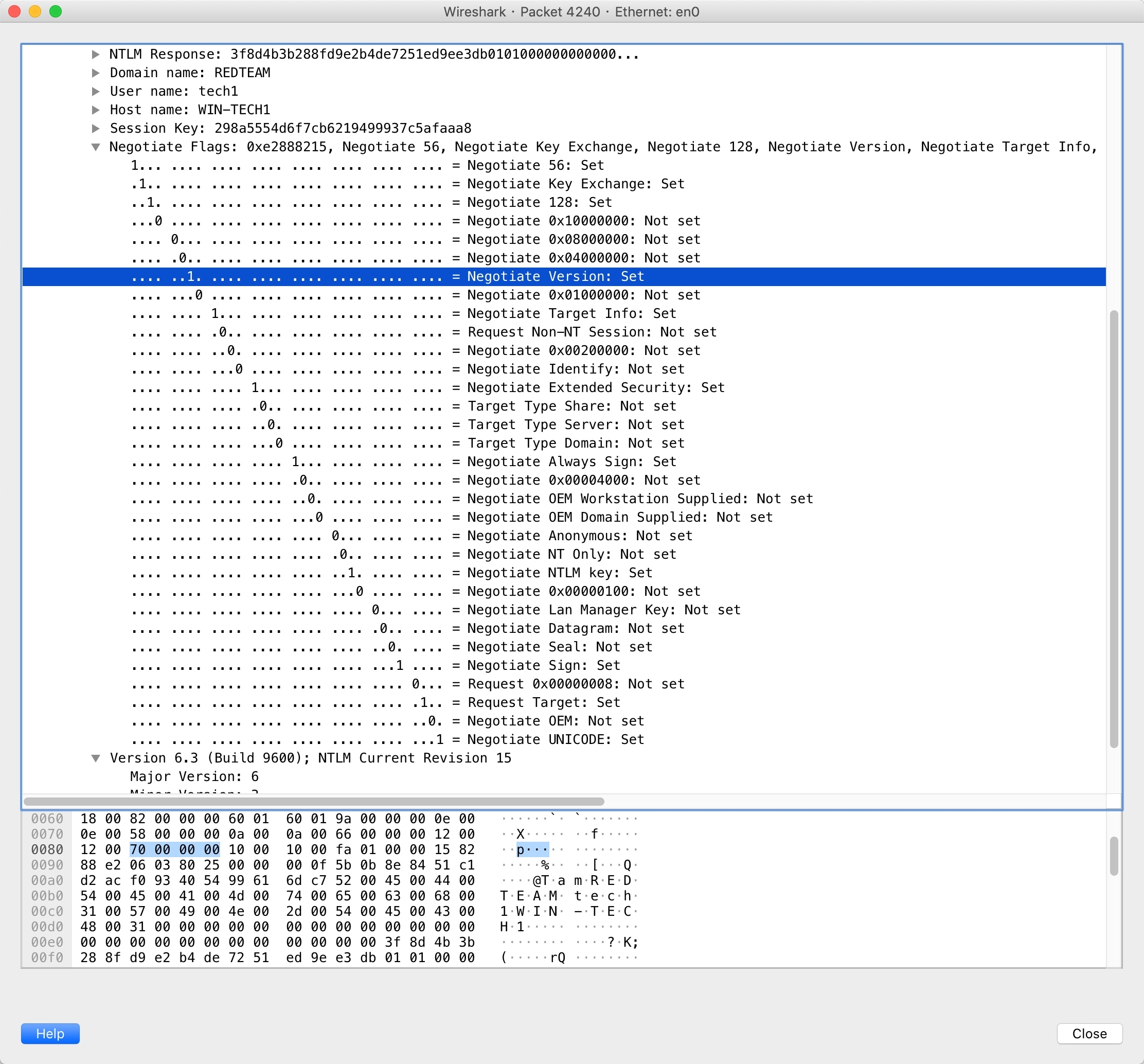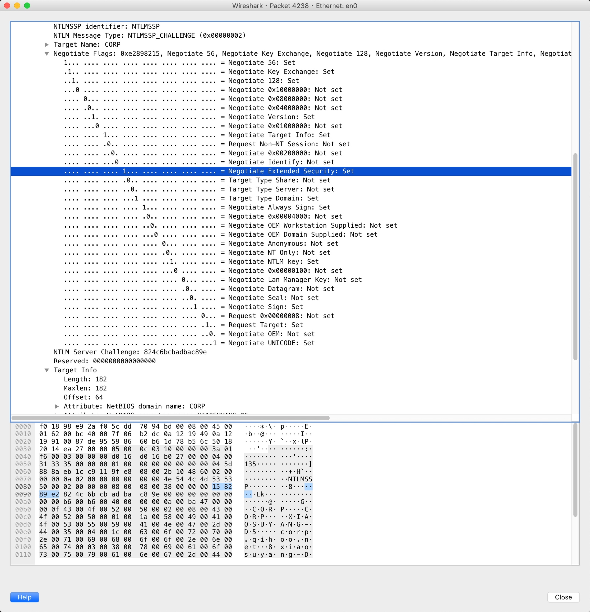 Target Name Security Buffer: Length: 12 bytes (0x0c00) Allocated Space: 12 bytes (0x0c00) Offset: 64 bytes (0x40000000)
