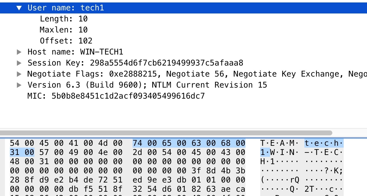 User Name Security Buffer: Length: 8 bytes (0x0800) Allocated Space: 8 bytes (0x0800) Offset: 76 bytes (0x4c000000)